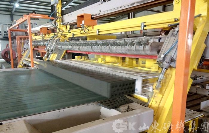 连续式砌块切割系统是目前世界上最先进的智能化新型切割系统,集切条、切坯功能于一体,具备单块倒角功能,真正实现了无泥头切割。采用伺服控制系统,精度高,稳定性好,能耗低,占地面积小,最大限度地简化了生产工艺。