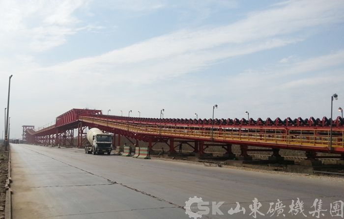大倾角上运带式输送机是一种用大倾角将物料由低到高输送的特种胶带机,主要应用于提升运输、高炉上料等工况,我公司生产的大倾角上运带式输送机可以有效防止大倾角情况下的物料下滑、滚料,有效控制带式输送机满载启动、停车,突然失电的情况下实现胶带机的可控软制动,输送倾斜角20°~32°,防止胶带机倒车是此种胶带机的关键技术。