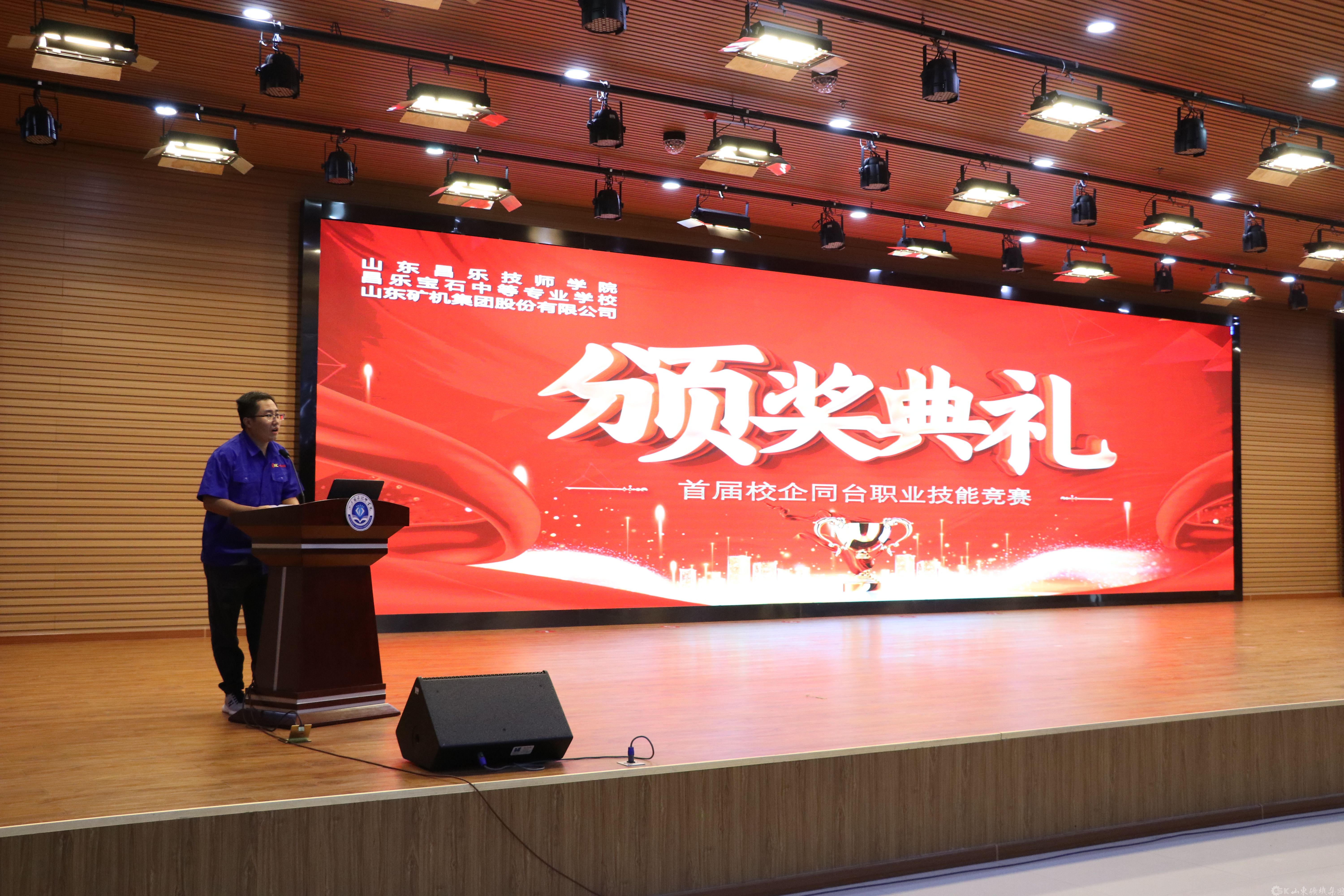 张总为颁奖典礼致辞,首先他对山东昌乐技师学院多年来为公司输入人才给予的支持表达了感谢,对本次校企同台职业技能竞赛取得圆满成功及大赛中脱颖而出的获奖选手表示热烈的祝贺,并介绍了企业情况。