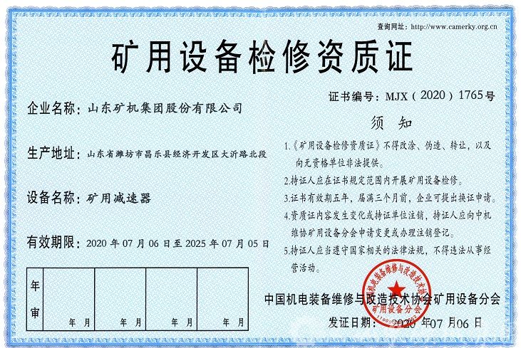 该资质是矿用产品维修服务综合实力的衡量标准,也是对我公司成熟产品服务管理体系的印证,更突显了公司产品经营的专业化服务特色。此次认证成功,即丰富了我公司的业务类型,也有助于对以往服务交付模式做进一步的优化与完善,为公司下一步更全面的服务于市场、开发新的业务领域提供了有利保障。
